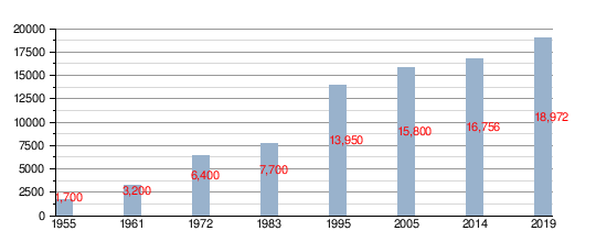 | - שינוי בגודל האוכלוסייה | +9.0% בשנה | |||||||||||||||||||||||||||||||||||||||||||||||||