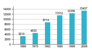 בשנת 2012 מנתה אוכלוסיית היישוב 13,844 תושבים. בשנת 1962 היא מנתה 2,158 תושבים, ב-1981 – 8,714 תושבים וב-1990 – 11,512 תושבים.