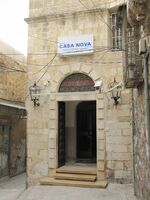 | 1-3000-210 | אכסניית קזה נובה | Casa Nova Inn | אכסניית קאזה נובה שוכנת ברובע הנוצרי בירושלים בסמיכות למנזר הפרנציסקני מנזר סן סלוודור, ברחוב הנושא את שמה של האכסניה. האכסניה נמצאת בבעלותו של המנזר הפרנציסקני הסמוך ובניהולו. מבנה האכסניה הוקם בשנת 1755 על גבי בית קברות פרנציסקני במטרה לשמש מקום מגורים לצליינים קתולים העולים לרגל לירושלים. בשנת 1806 הוספו חדרים עליונים יותר לאכסניה, ואילו ב-1866 נבנה המבנה מחדש. | רחוב האחים, ירושלים 31°46′43″N 35°13′39″E / 31.77867°N 35.22744°E |